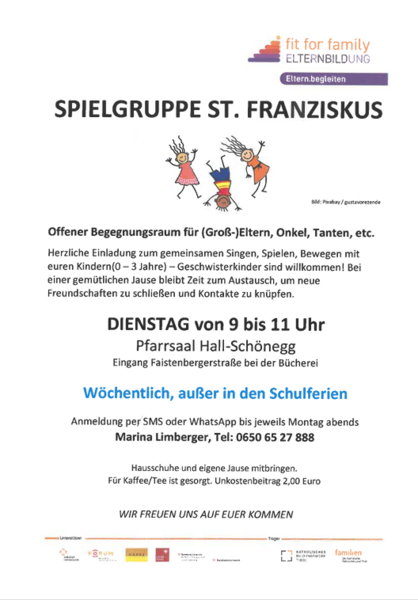 Anmeldung per SMS oder WhatsApp bis jeweils Montagabend bei Marina Limberger - 0650/ 65 27 888